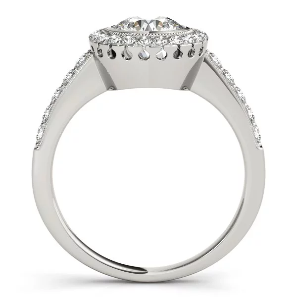 14k White Gold Halo Diamond Engagement Ring With Double Row Band (1 3/8 cttw)